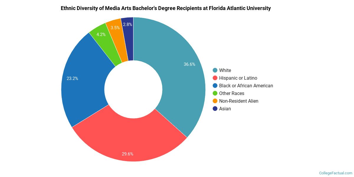 The following table and chart show the ethnic background for students who recently graduated from Florida Atlantic University with a bachelor's in interactive multimedia.