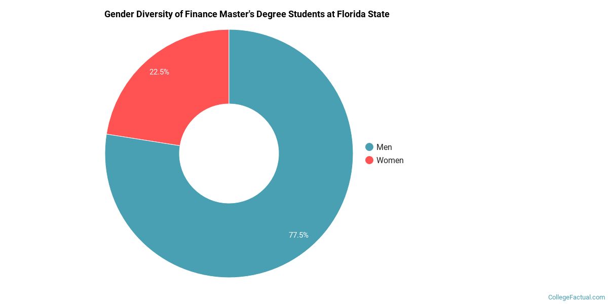 Of the 40 students who earned a master's degree in Finance from Florida State in 2020-2021, 78% were men and 23% were women.