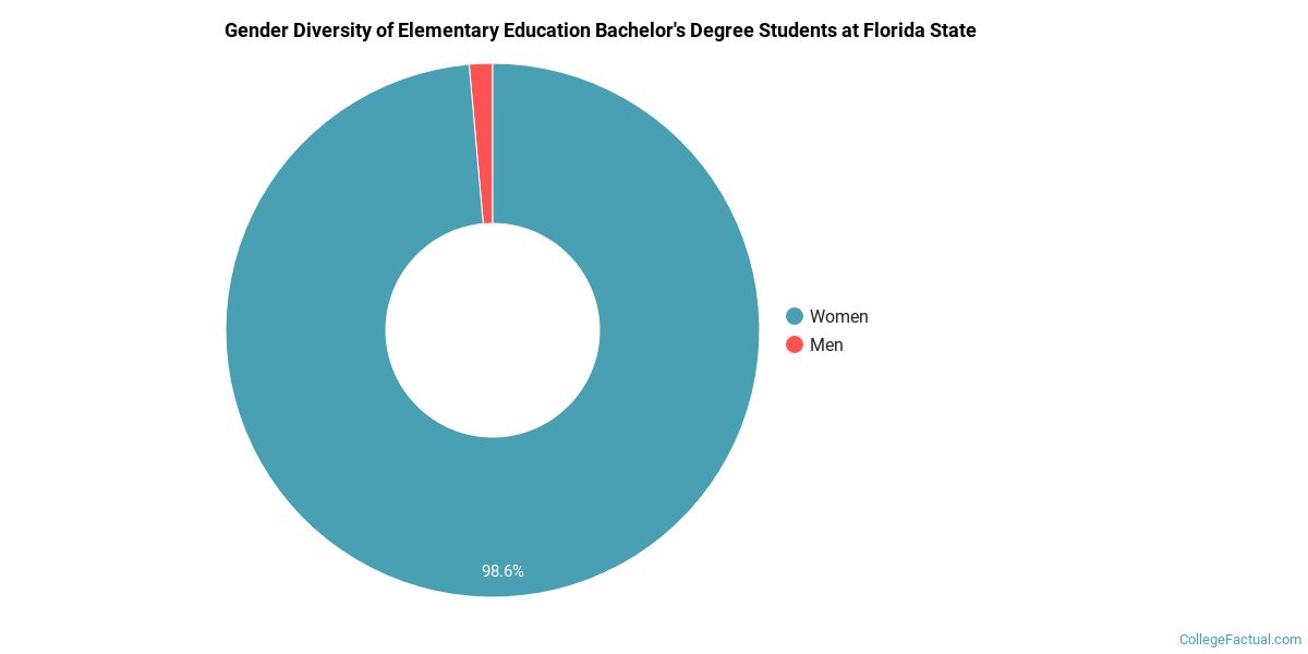 In the 2020-2021 academic year, 71 students earned a bachelor's degree in elementary teaching from Florida State. About 99% of these graduates were women and the other 1% were men.
