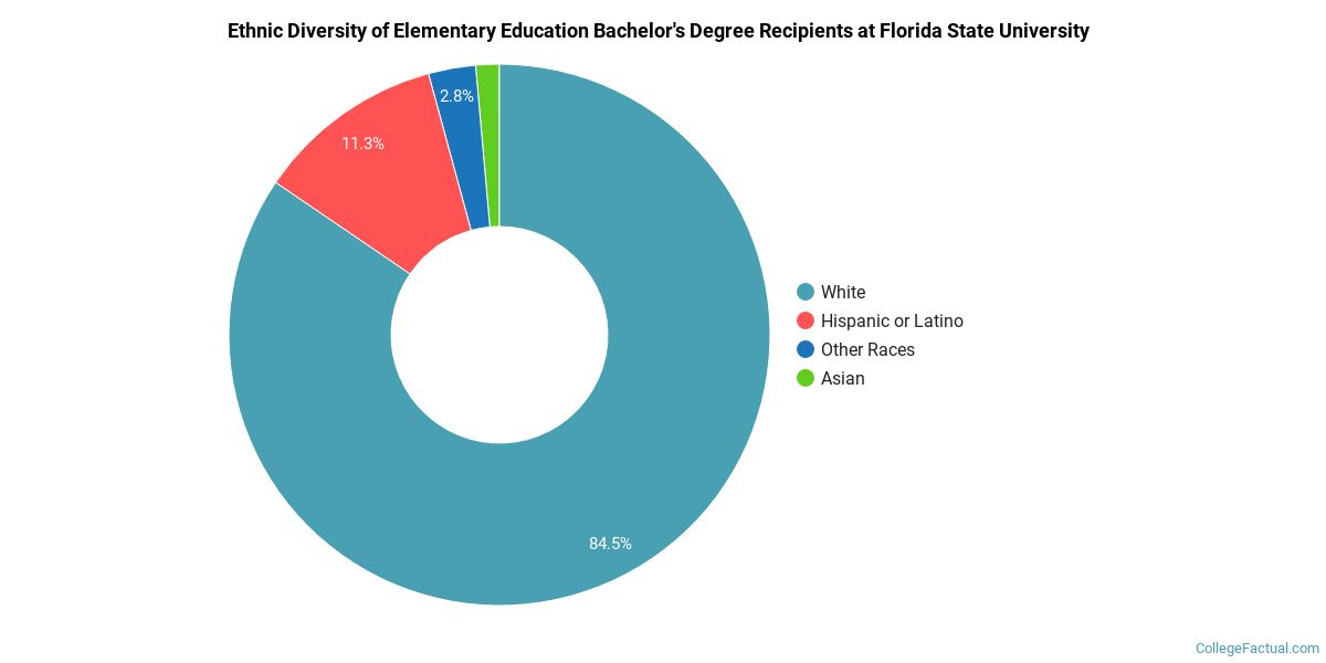 During the 2020-2021 academic year, Florida State University handed out 71 bachelor's degrees in elementary education. This is an increase of 18% over the previous year when 60 degrees were handed out.