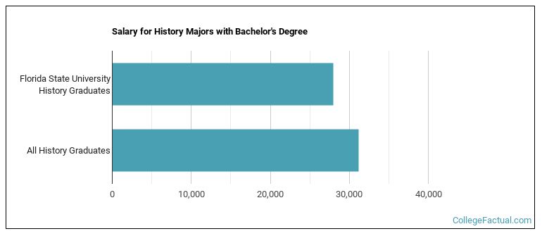 The median salary of history students who receive their bachelor's degree at Florida State is $27,944. Unfortunately, this is lower than the national average of $31,217 for all history students.