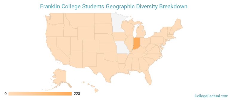 5.91% of Franklin College of Indiana students come from out of state, and 0.42% come from out of the country.