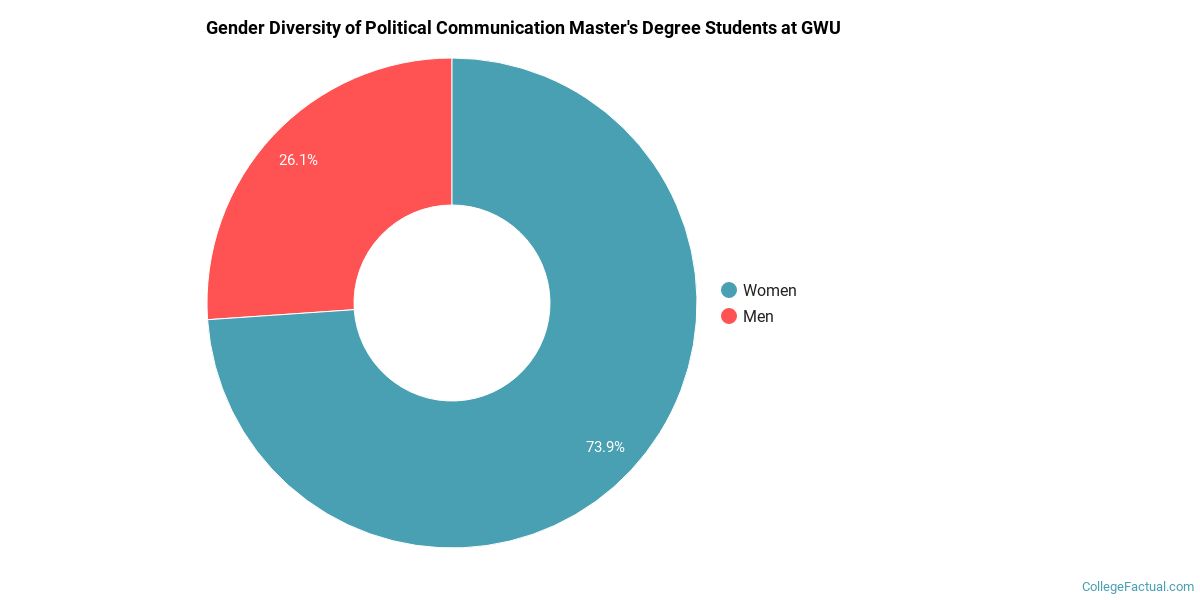 Of the 23 students who graduated with a Master’s in political communication from GWU in 2021, 26% were men and 74% were women.