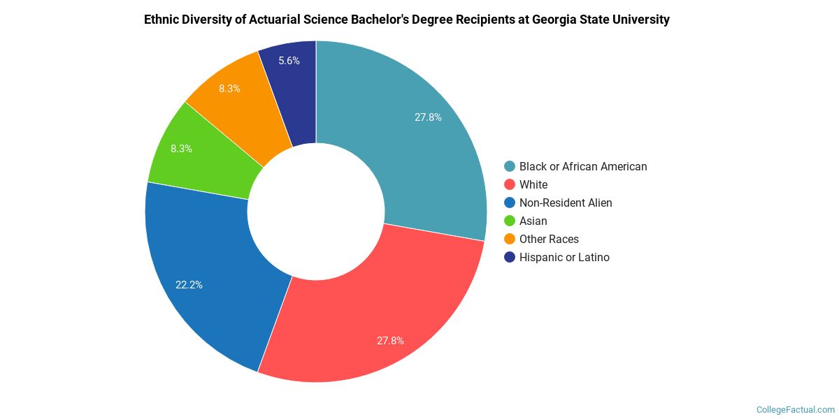 During the 2020-2021 academic year, 36 students graduated with a bachelor's degree in actuarial science from Georgia State. About 44% were men and 56% were women.
