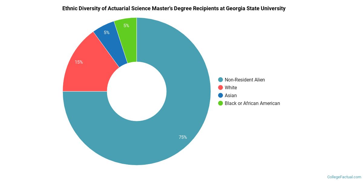 In 2021, 20 students received their master’s degree in actuarial science from Georgia State. This makes it the #6 most popular school for actuarial science master’s degree candidates in the country.