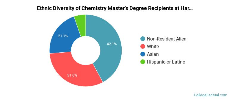 During the 2021-2022 academic year, 19 students graduated with a master's degree in chemistry from Harvard. About 53% were men and 47% were women.