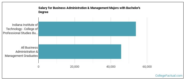 The median salary of business administration students who receive their bachelor's degree at Indiana Tech - CPS is $53,894. This is higher than $45,741, which is the national median for all business administration bachelor's degree recipients.
