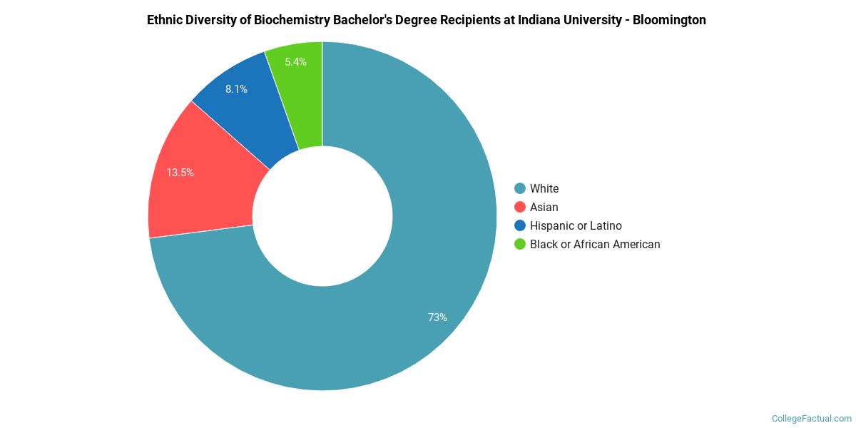 The following table and chart show the ethnic background for students who recently graduated from Indiana University - Bloomington with a bachelor's in biological chemistry.