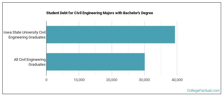 While getting their bachelor's degree at Iowa State, civil eng students borrow a median amount of $39,373 in student loans. This is higher than the the typical median of $30,083 for all civil eng majors across the country.