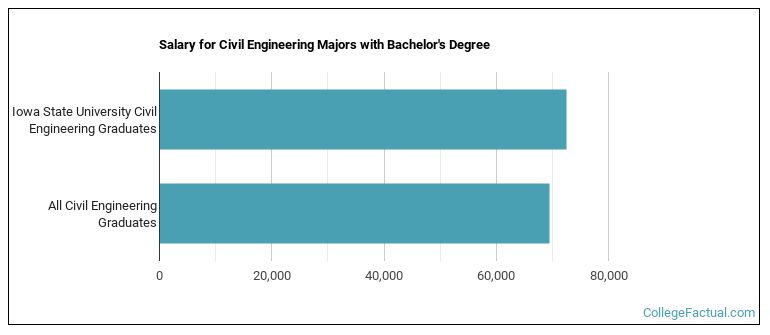 Civil Eng majors who earn their bachelor's degree from Iowa State go on to jobs where they make a median salary of $72,502 a year. This is higher than $69,566, which is the national median for all civil eng bachelor's degree recipients.