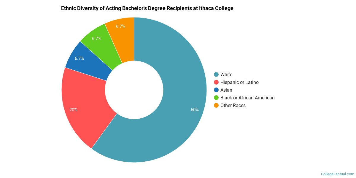 During the 2020-2021 academic year, Ithaca College handed out 15 bachelor's degrees in acting. This is an increase of 36% over the previous year when 11 degrees were handed out.