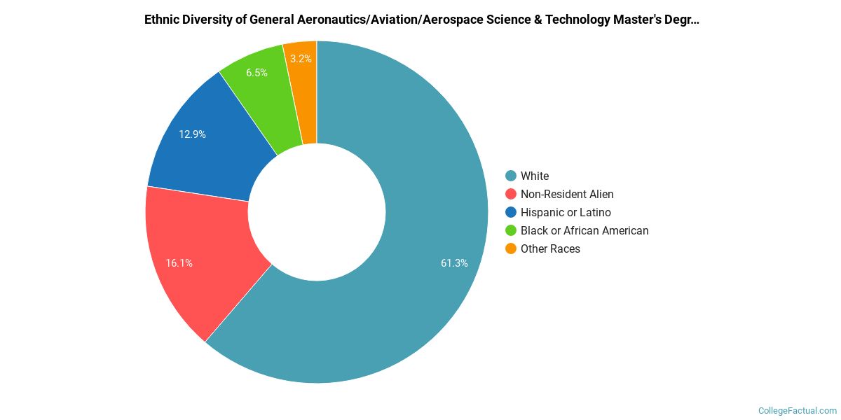 The following table and chart show the ethnic background for students who recently graduated from Lewis University with a master's in general aeronautics/aviation/aerospace science & technology.