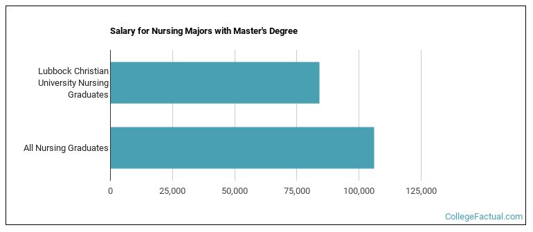 Graduates of the master's nursing program at LCU make a median salary of $84,157. This is less than what their typical peers from other schools make. Their median salary is $106,154.