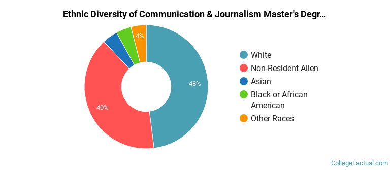 The following table and chart show the ethnic background for students who recently graduated from Maryland Institute College of Art with a master's in communication & journalism.