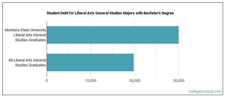 While getting their bachelor's degree at MSU Bozeman, liberal arts students borrow a median amount of $29,997 in student loans. This is higher than the the typical median of $19,782 for all liberal arts majors across the country.