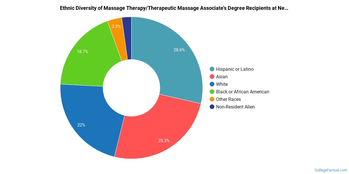 The following table and chart show the ethnic background for students who recently graduated from New York College of Health Professions with a associate's in massage therapy/therapeutic massage.