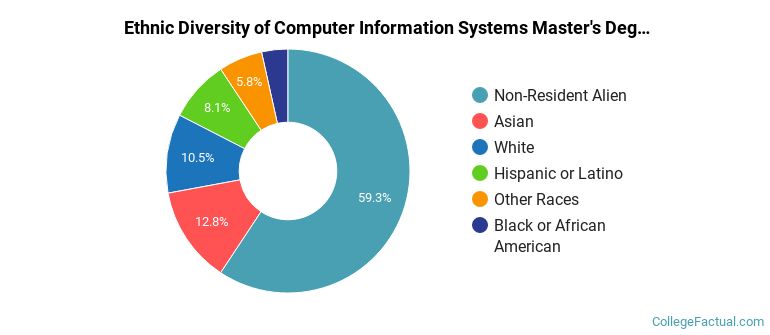 The following table and chart show the ethnic background for students who recently graduated from New York Institute of Technology with a master's in cis.