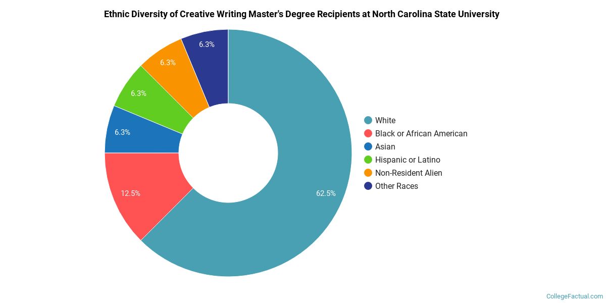 In 2021, 16 students received their master’s degree in creative writing from NC State. This makes it the #56 most popular school for creative writing master’s degree candidates in the country.