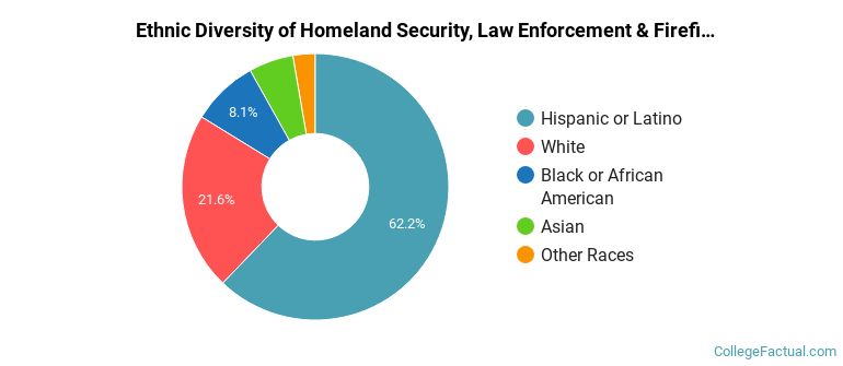 Take a look at the following statistics related to the make-up of the homeland security, law enforcement & firefighting majors at Northeastern Illinois University.