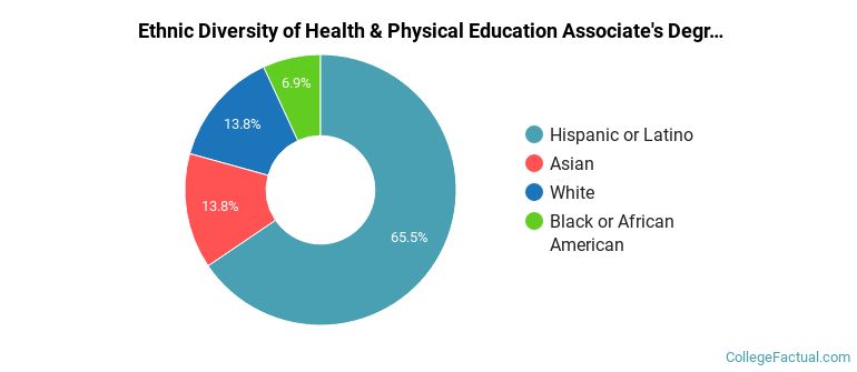 For the most recent academic year available, 31% of phys ed associate's degrees went to men and 69% went to women.