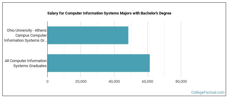 The median salary of cis students who receive their bachelor's degree at OHIO Athens is $48,515. This is less than $61,300, which is the national median of all cis majors in the nation who earn bachelor's degrees.