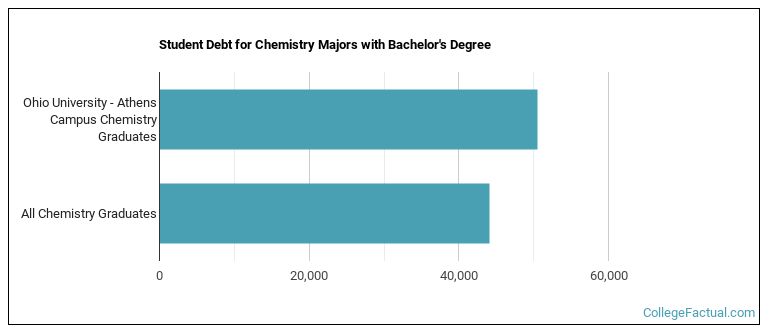 While getting their bachelor's degree at OHIO Athens, chemistry students borrow a median amount of $50,465 in student loans. This is higher than the the typical median of $44,045 for all chemistry majors across the country.