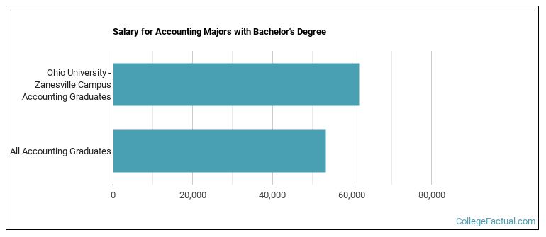 The median salary of accounting students who receive their bachelor's degree at OHIO Zanesville is $61,856. This is higher than $53,483, which is the national median for all accounting bachelor's degree recipients.