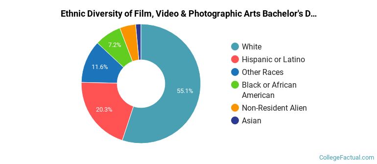 The following table and chart show the ethnic background for students who recently graduated from Pace University - New York with a bachelor's in film.