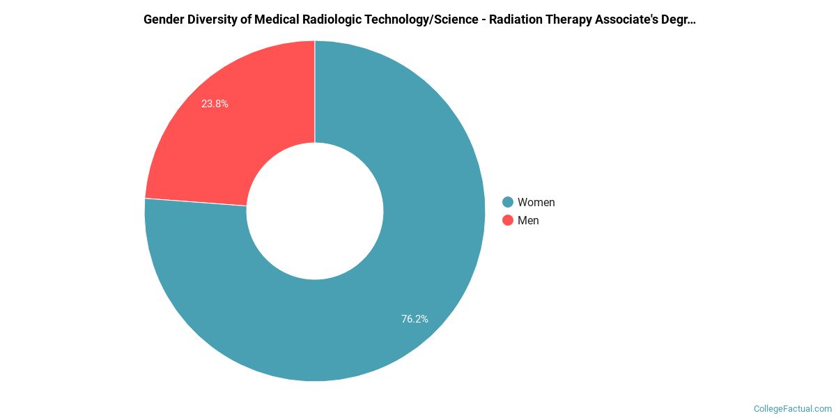 Of the 21 medical radiologic technology/science - radiation therapist students who graduated with a associate's degree in 2020-2021 from Palm Beach State College, about 24% were men and 76% were women.