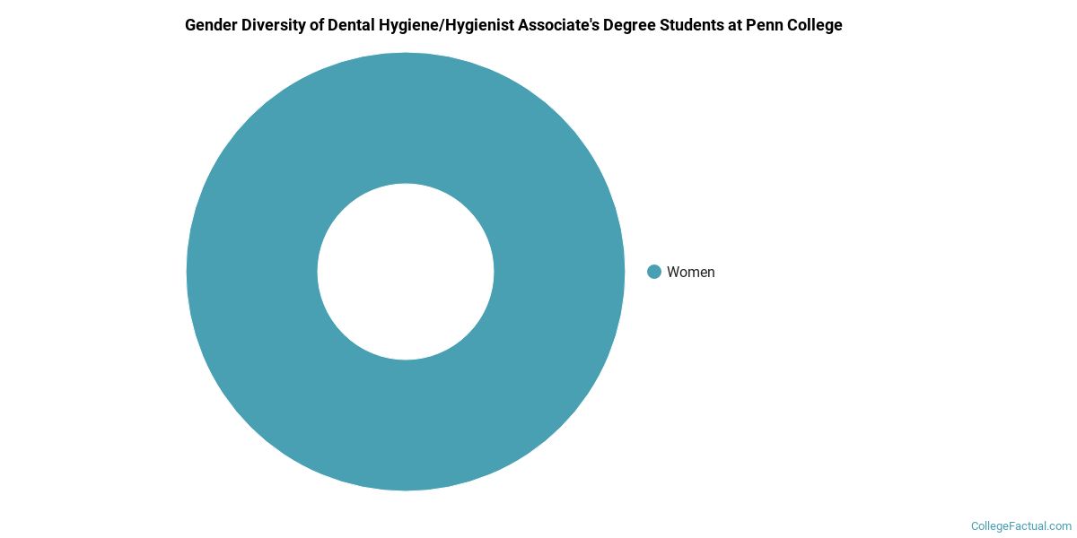 The dental hygiene program at Penn College awarded 39 bachelor's degrees in 2020-2021. About 5% of these degrees went to men with the other 95% going to women.