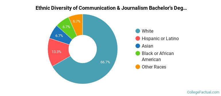 The following table and chart show the ethnic background for students who recently graduated from Pennsylvania State University - Berks with a bachelor's in communication & journalism.