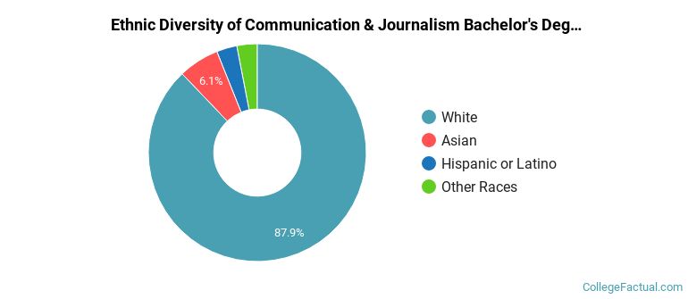 The following table and chart show the ethnic background for students who recently graduated from Pennsylvania State University - Erie - Behrend College with a bachelor's in communication & journalism.