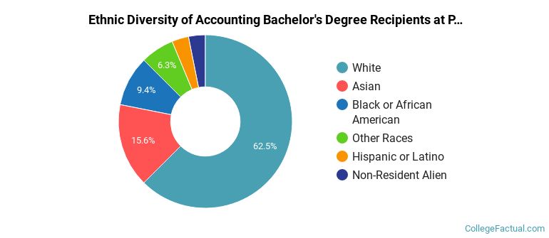 The following table and chart show the ethnic background for students who recently graduated from Pennsylvania State University - Harrisburg with a bachelor's in accounting.