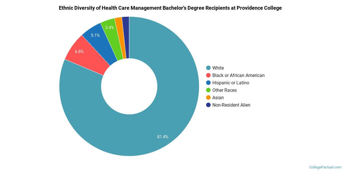 The following table and chart show the ethnic background for students who recently graduated from Providence College with a bachelor's in health care management.