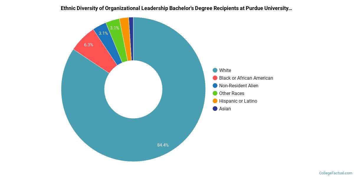 The following table and chart show the ethnic background for students who recently graduated from Purdue University - Main Campus with a bachelor's in organizational leadership.