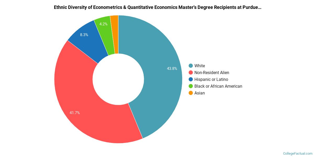 The following table and chart show the ethnic background for students who recently graduated from Purdue University - Main Campus with a master's in econometrics and quantitative economics.