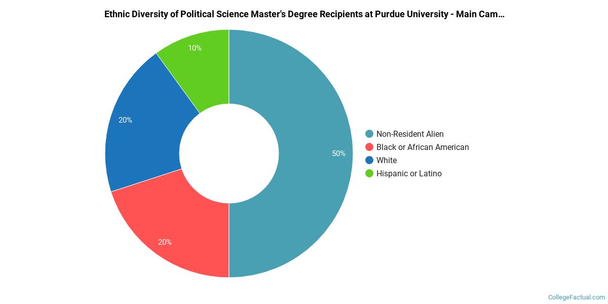 The following table and chart show the ethnic background for students who recently graduated from Purdue University - Main Campus with a master's in poly sci.