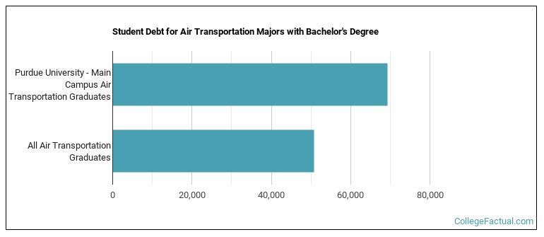 While getting their bachelor's degree at Purdue, air transport students borrow a median amount of $69,266 in student loans. This is higher than the the typical median of $50,824 for all air transport majors across the country.