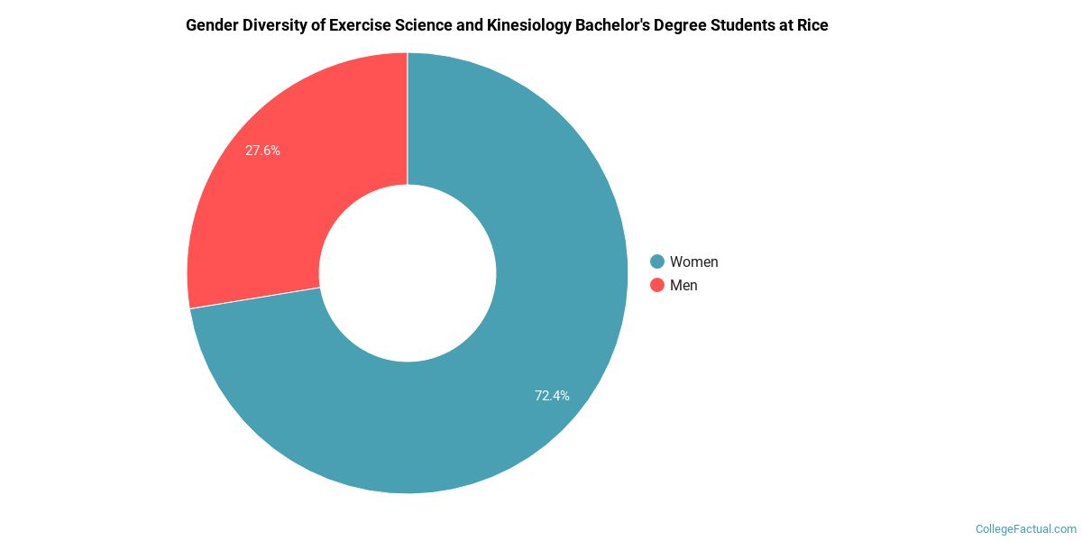 Of the 58 exercise science students who graduated with a bachelor's degree in 2020-2021 from Rice, about 28% were men and 72% were women.