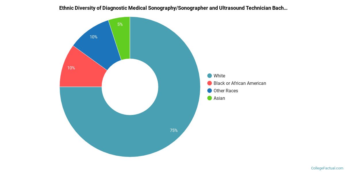 The following table and chart show the ethnic background for students who recently graduated from Rochester Institute of Technology with a bachelor's in diagnostic medical sonography/sonographer and ultrasound technician.