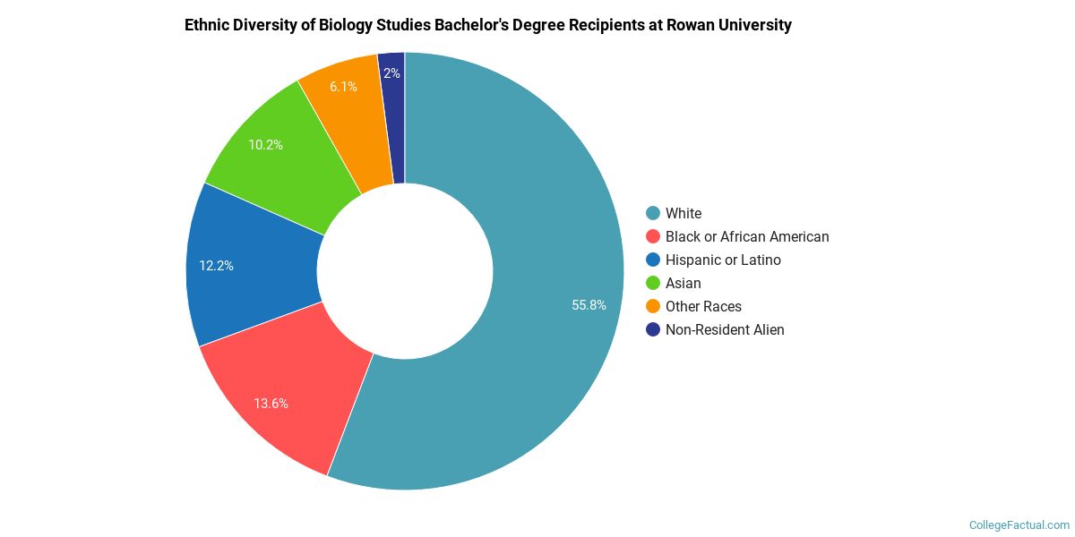 The following table and chart show the ethnic background for students who recently graduated from Rowan University with a bachelor's in biological sciences.