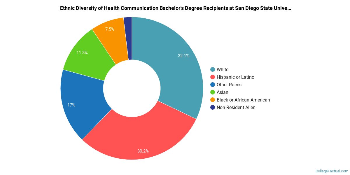 In the 2020-2021 academic year, 53 students earned a bachelor's degree in health communication from SDSU. About 70% of these graduates were women and the other 30% were men.