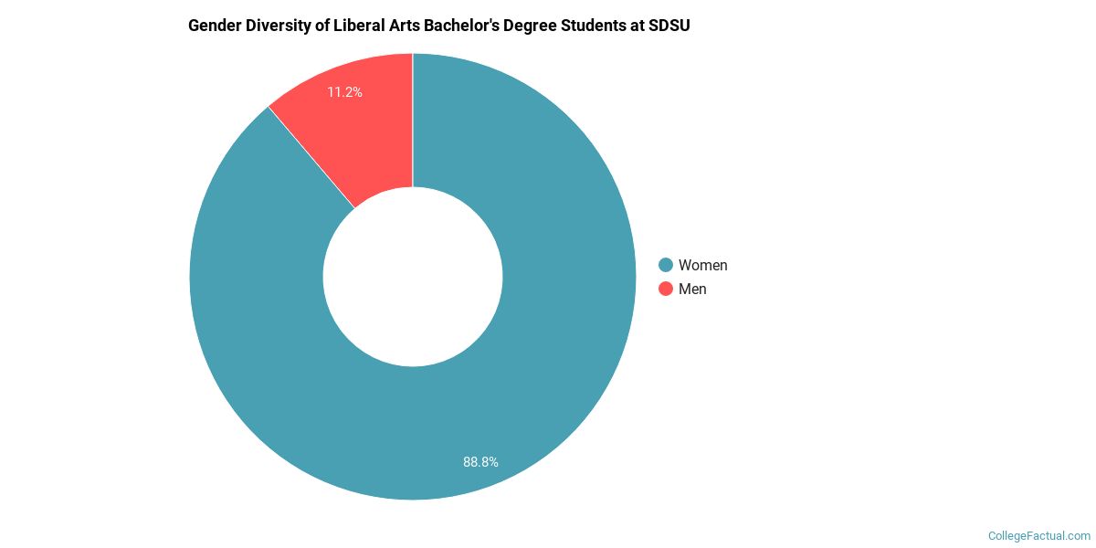 During the 2020-2021 academic year, 232 students graduated with a bachelor's degree in liberal studies from SDSU. About 11% were men and 89% were women.