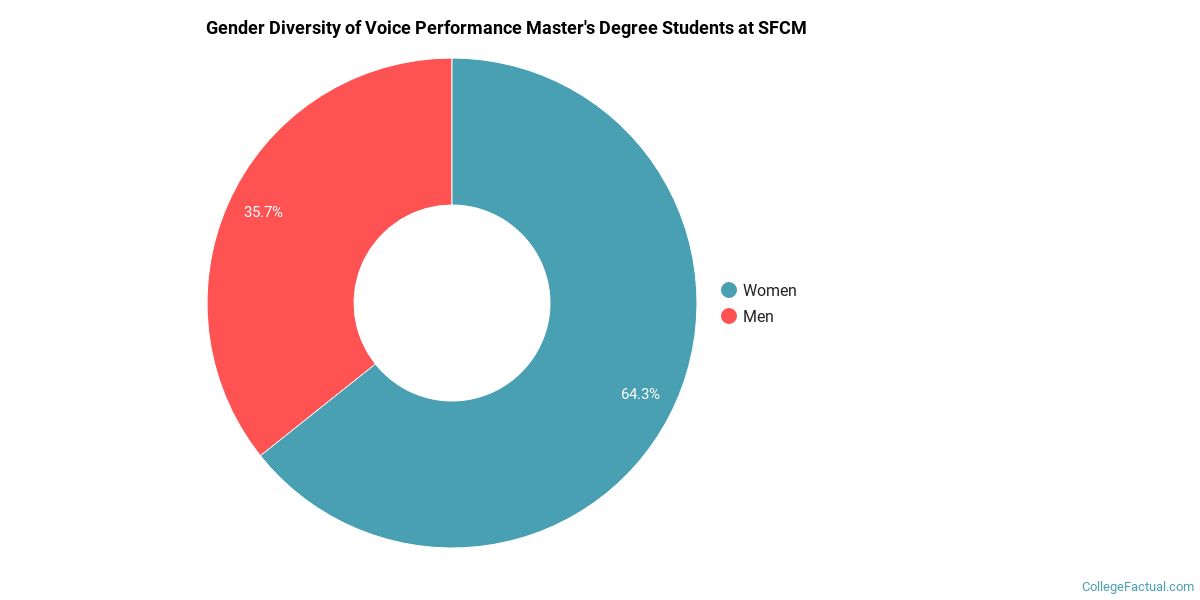 Of the 14 students who earned a master's degree in Voice Performance from SFCM in 2020-2021, 36% were men and 64% were women.