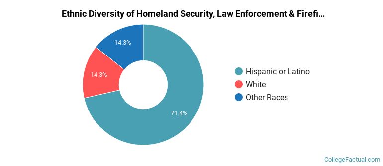 Of the 7 homeland security, law enforcement & firefighting students who graduated with a associate's degree in 2021-2022 from , about 43% were men and 57% were women.