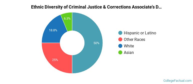 Of the 16 students who graduated with a Associate’s in criminal justice from in 2022, 63% were men and 38% were women.