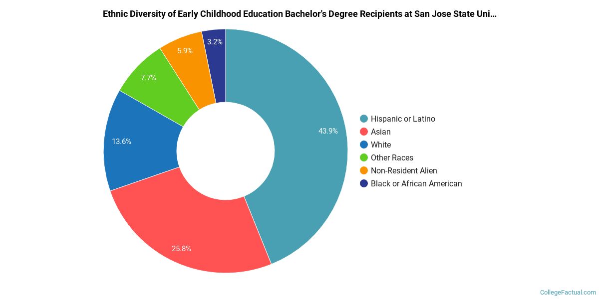 During the 2020-2021 academic year, San Jose State University handed out 221 bachelor's degrees in early childhood education. This is a decrease of 11% over the previous year when 248 degrees were handed out.