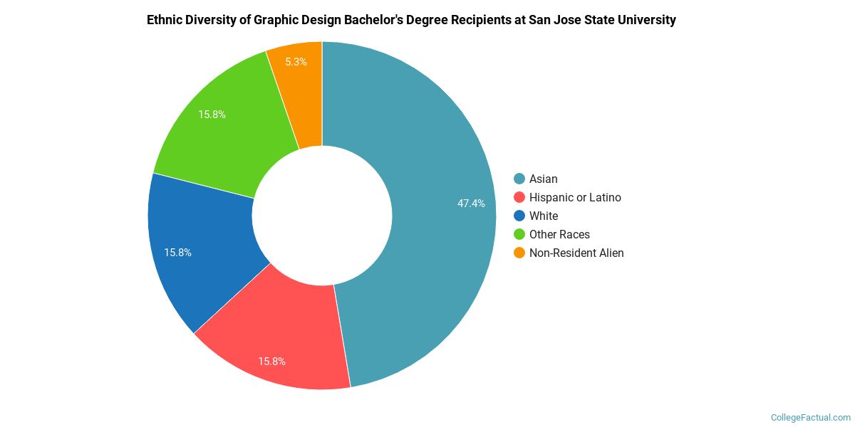 The graphic design program at San Jose State awarded 19 bachelor's degrees in 2020-2021. About 16% of these degrees went to men with the other 84% going to women.