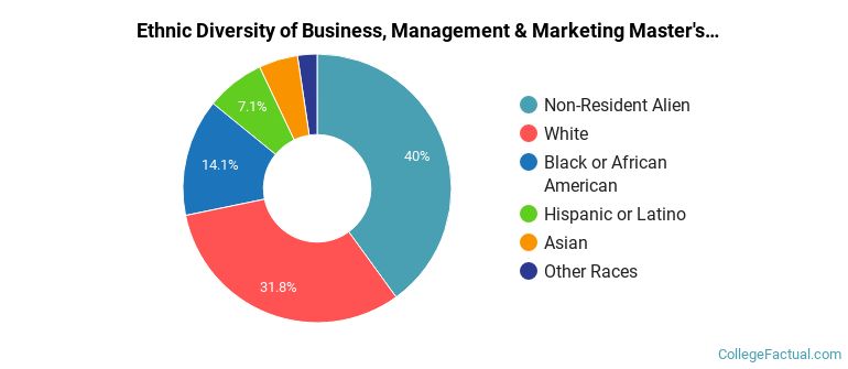 The following table and chart show the ethnic background for students who recently graduated from Savannah College of Art and Design with a master's in business, management & marketing.