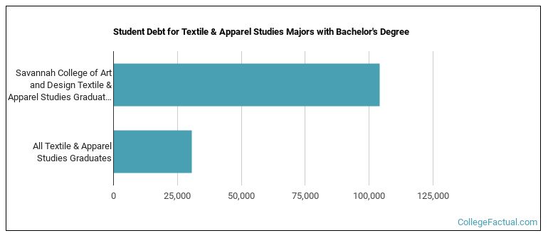 While getting their bachelor's degree at SCAD, textile studies students borrow a median amount of $104,144 in student loans. This is higher than the the typical median of $30,500 for all textile studies majors across the country.
